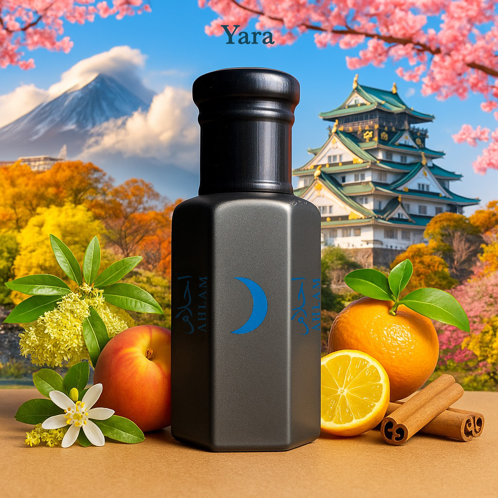 Yara opens with a luminous blend of osmanthus, peach, and mandarin, kissed by neroli, bergamot, and a whisper of cinnamon — a dance between sweetness and heat. At its heart, Indian tuberose, jasmine, narcissus, and May rose bloom in full harmony, weaving a feminine aura that feels both soft and powerful. As it settles, amber, cedar, and sandalwood melt into patchouli and vetiver, leaving behind a warm, addictive trail that lingers like a secret memory.